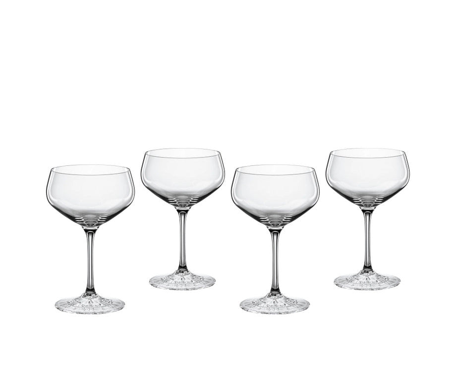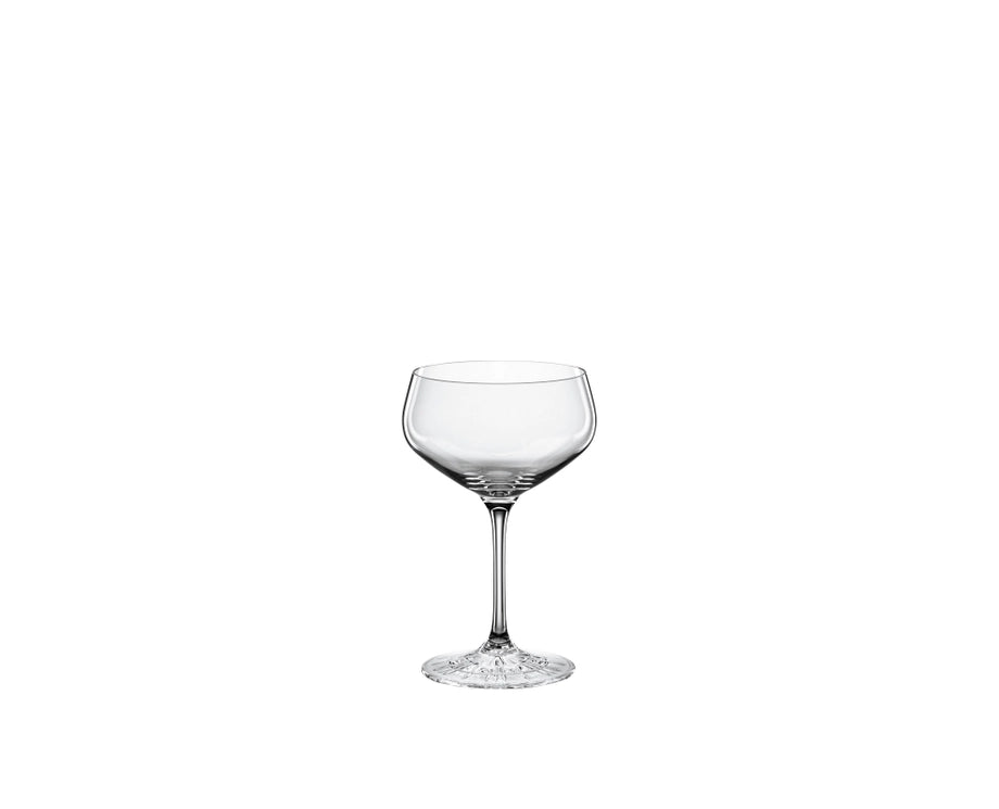 The Coupette is designed for drinks that include a small juice content or mixer as well as alcohol. As a result, this glass holds a slightly larger capacity than the Cocktail glass.