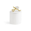 The Butterfly Ginkgo Gold Porcelain Canister from Michael Aram blends exquisite craftsmanship with the natural beauty of metamorphosis. Inspired by the “Butterfly Ginkgo” tree, each canister features sculpted brass leaves and twigs, polished to a radiant gold hue that brings fresh vibrancy and energy. The cocoon-like porcelain vessel is hand-polished to a mirror-like finish, reflecting the delicate, white enamel butterflies that add an ethereal touch. This piece pays homage to Aram’s iconic Butterfly Ginkgo Collection, elevating it with new life and timeless beauty. Available in three sizes, each canister exudes luxurious elegance and artistry.