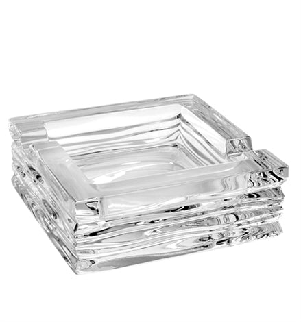 Crystal ashtray from their Fiord collection characterized by its clear, crystalline form and minimalist, clean lines inspired by Nordic design.