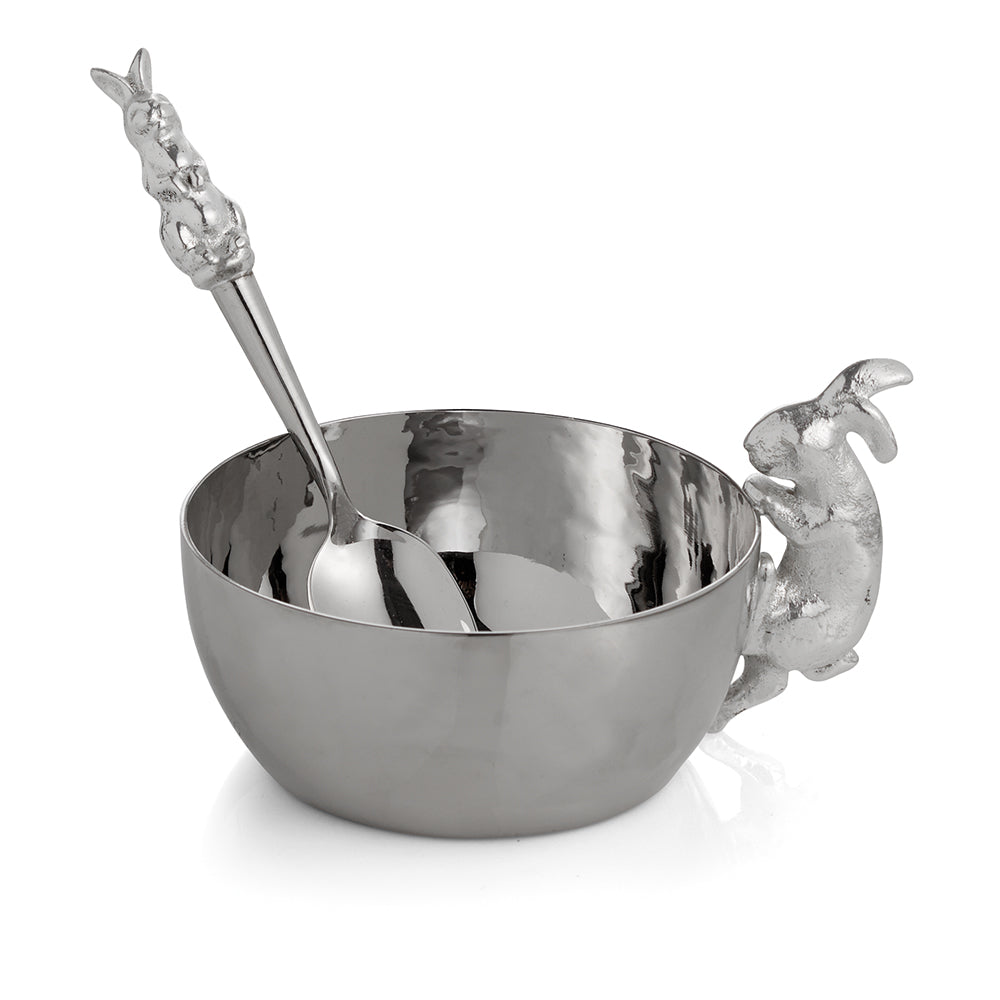 (Set) 3″W x 4.25″L x 2.5″H, Spoon 5″L; Stainless Steel, Silverplate