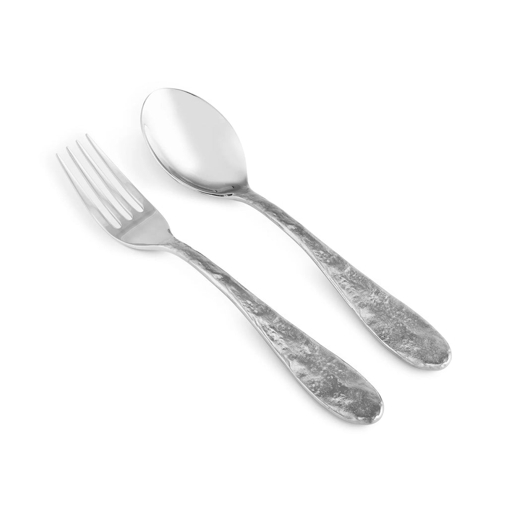 The Michael Aram Cast Iron Serving Set draws inspiration from the raw, dynamic textures of iron forging. Expertly crafted in stainless steel, each piece features a tactile, yet refined surface, evoking the beauty and strength of cast iron. The design seamlessly integrates with Michael's other dinnerware patterns, offering effortless sophistication. The spoon and fork, each 9.75" long, are ideal for serving with both elegance and durability, adding a luxurious touch to any table setting.